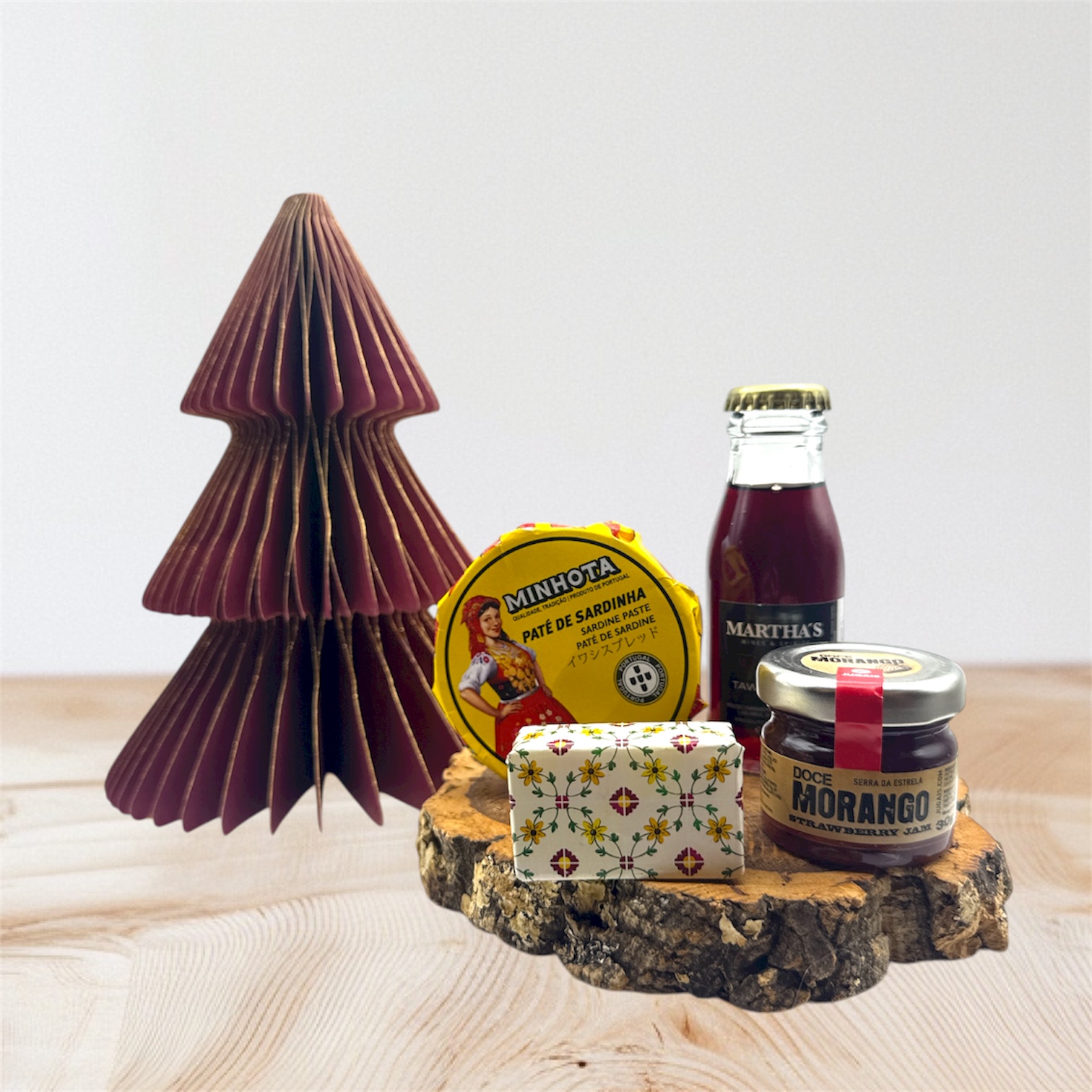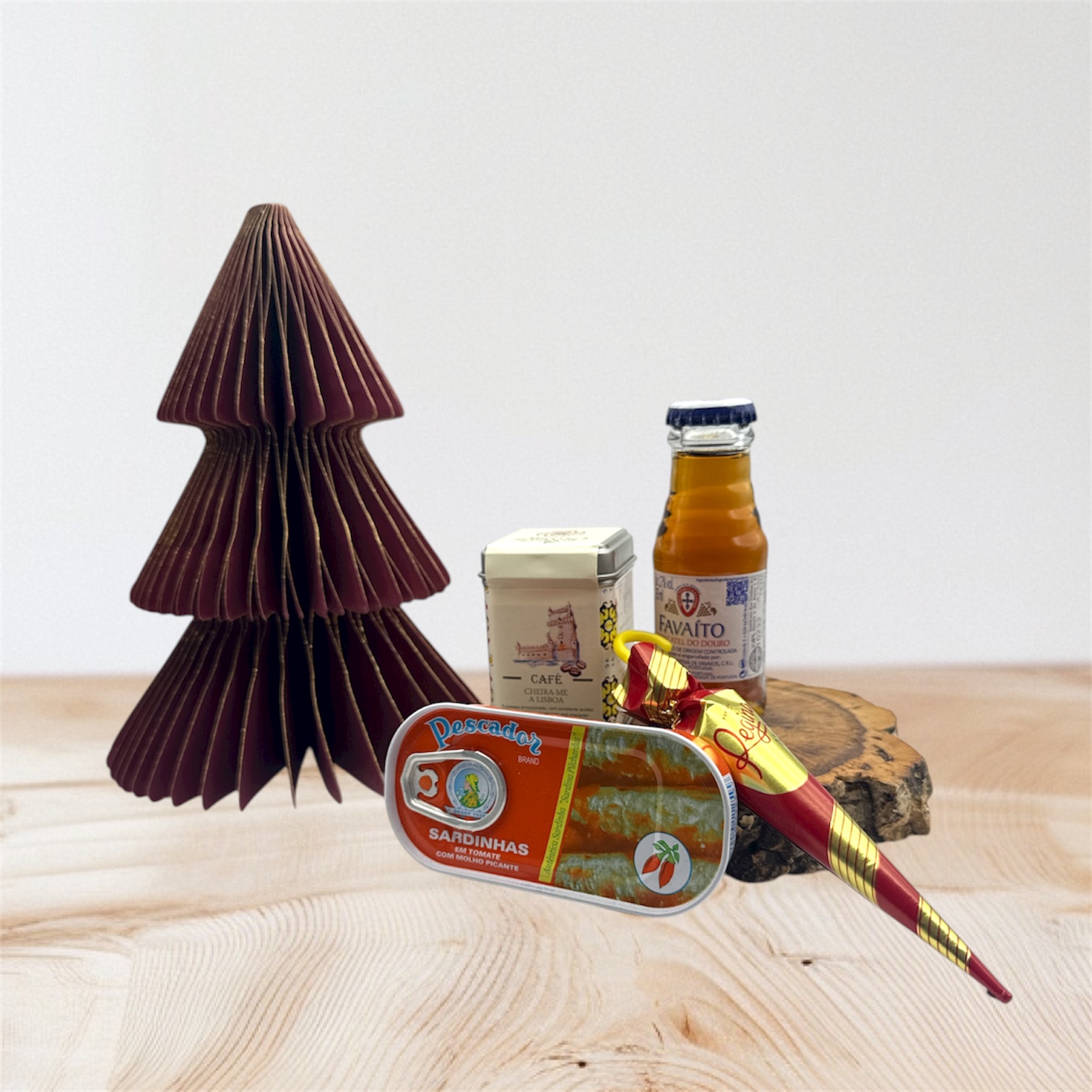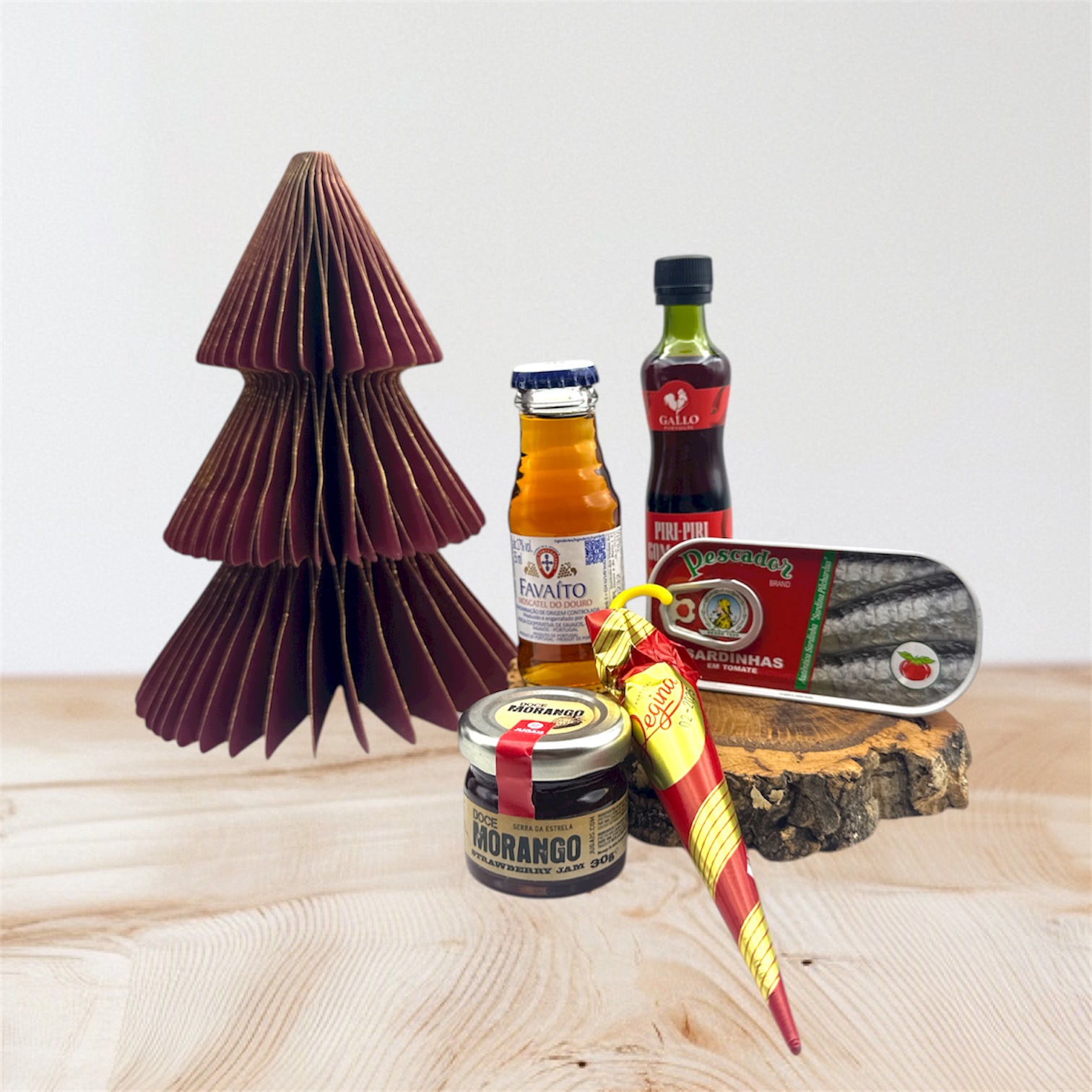 Cabaz de Natal 8,99 € Desconto de %. IVA incluído. Partilhar Cabaz Cabaz 1 Cabaz 2 Cabaz 3 Cabaz 4 Cabaz 5 Comprar Contactar SKU: 25NATAL01 Pack composto por saquinho transparente, etiqueta e produtos tradiconais portugueses Caso queira alguma personalização (ex Nome) podemos acrescentar sem qualquer custo!! Cabaz 1 - 8.99€ Miniatura de Favaito Monodose de Doce ( pode variar: morango ou abobora) Sardinhas de Chocolate caixa cartão (desenhos sortidos) Conserva de sardinha (Sardinha em Azeite, em oleo, oleo picante, tomate) Cabaz 2 - 9.99€ Monodose de Doce ( pode variar: morango ou abobora) Miniatura de Sabonete de Azeite Patê ( pode variar: Sardinha, sardinha picante, Atum, atum picante ou Cavala) Vinho do Porto Miniatura 5cl Cabaz 3 -9.99€ Vinho do Porto Miniatura 5cl Conserva de sardinha (pode variar: Sardinha em Azeite, em oleo, oleo picante, tomate) Bombons em saquetas ( pode variar: avelã, pastel de nata, caramelo salgado, vinho do porto) Piri Piri Cabaz 4 -9.99€ Miniatura de Café de Lisboa Miniatura de Favaito Conserva de sardinha (Sardinha em Azeite, em oleo, oleo picante, tomate) Sombrinha chocolate Regina Cabaz 5 -10.99 € Miniatura de Favaito Sardinhas de Chocolate caixa cartão (desenhos sortidos) Monodose de Doce ( pode variar: morango ou abobora) Conserva de sardinha (Sardinha em Azeite, em oleo, oleo picante, tomate) Piri Piri