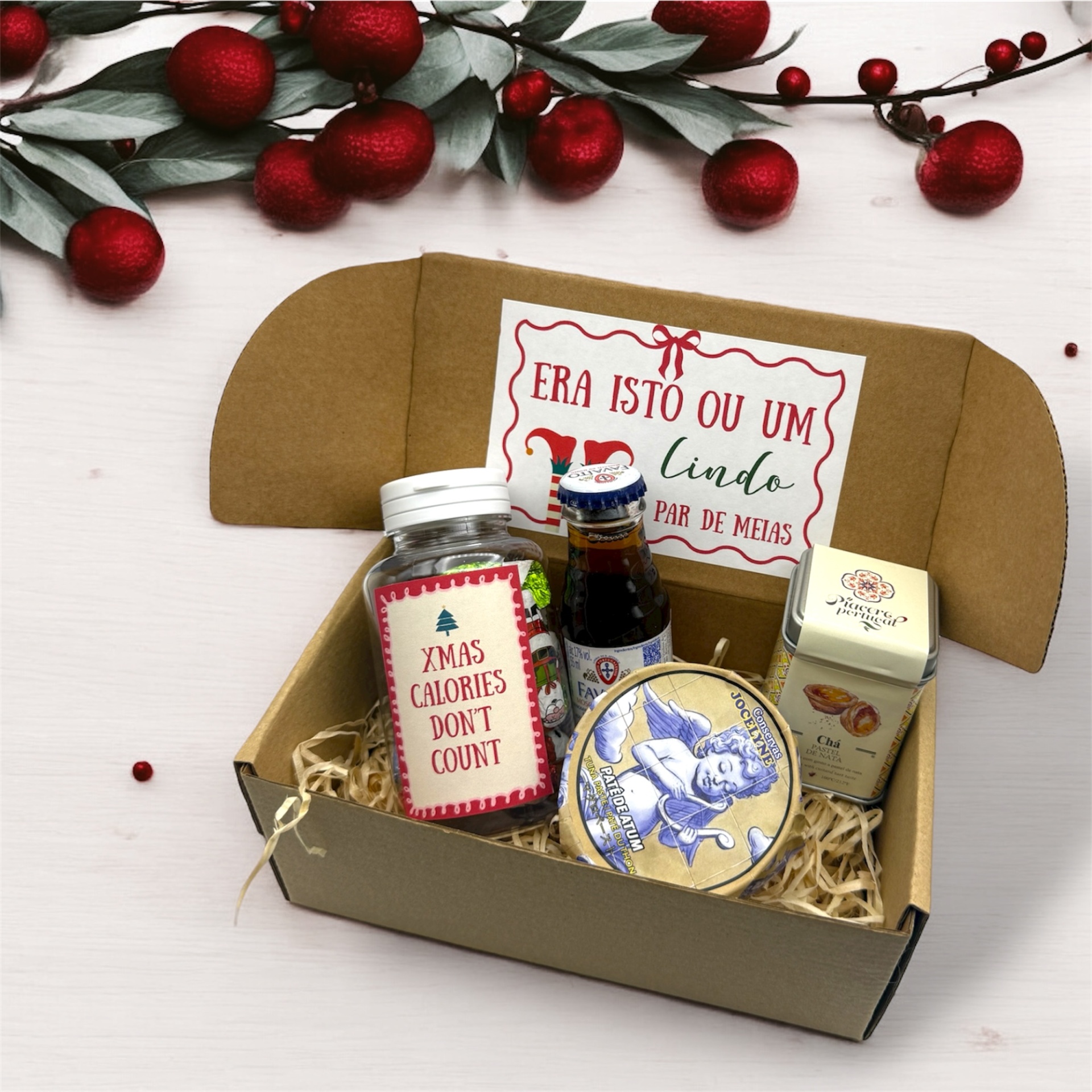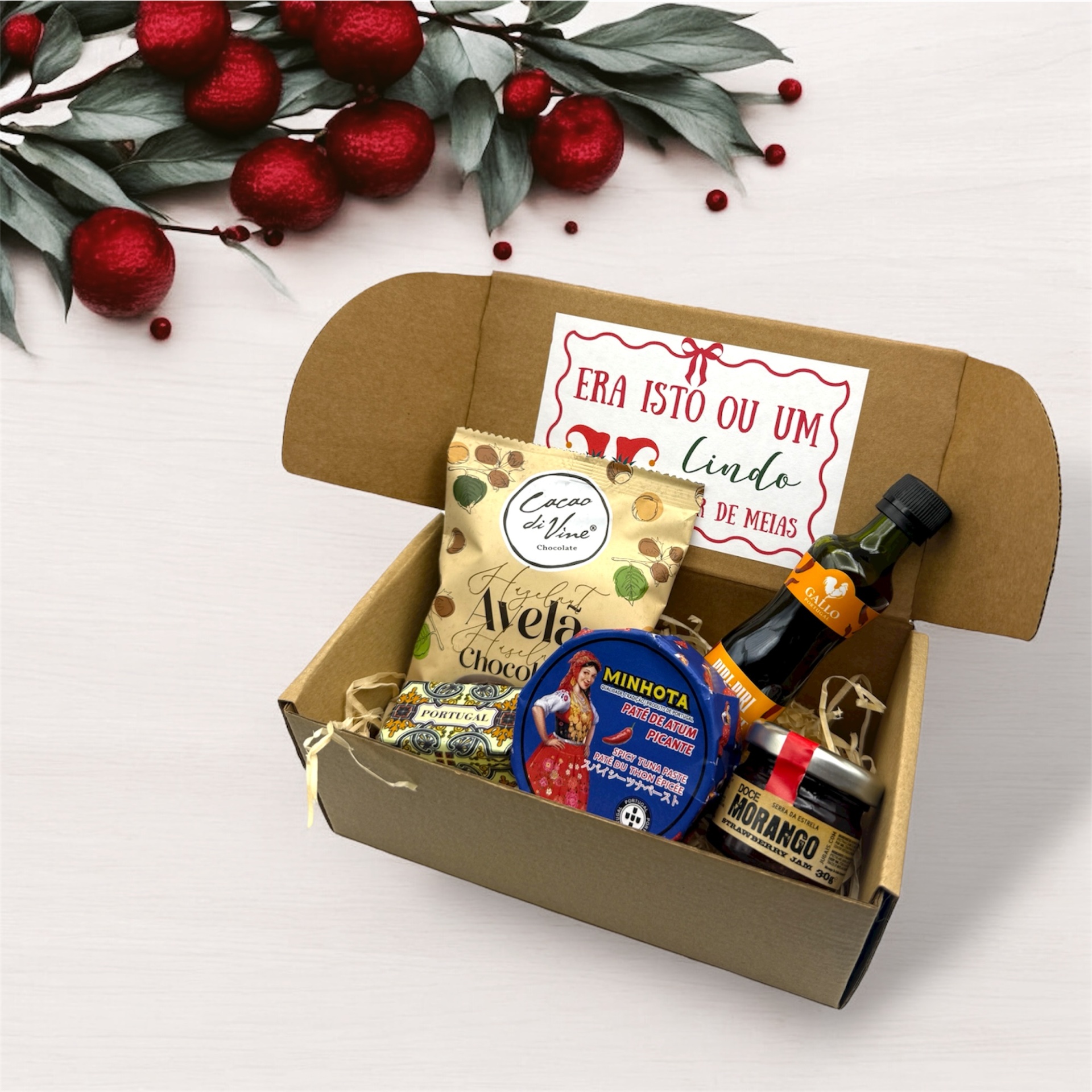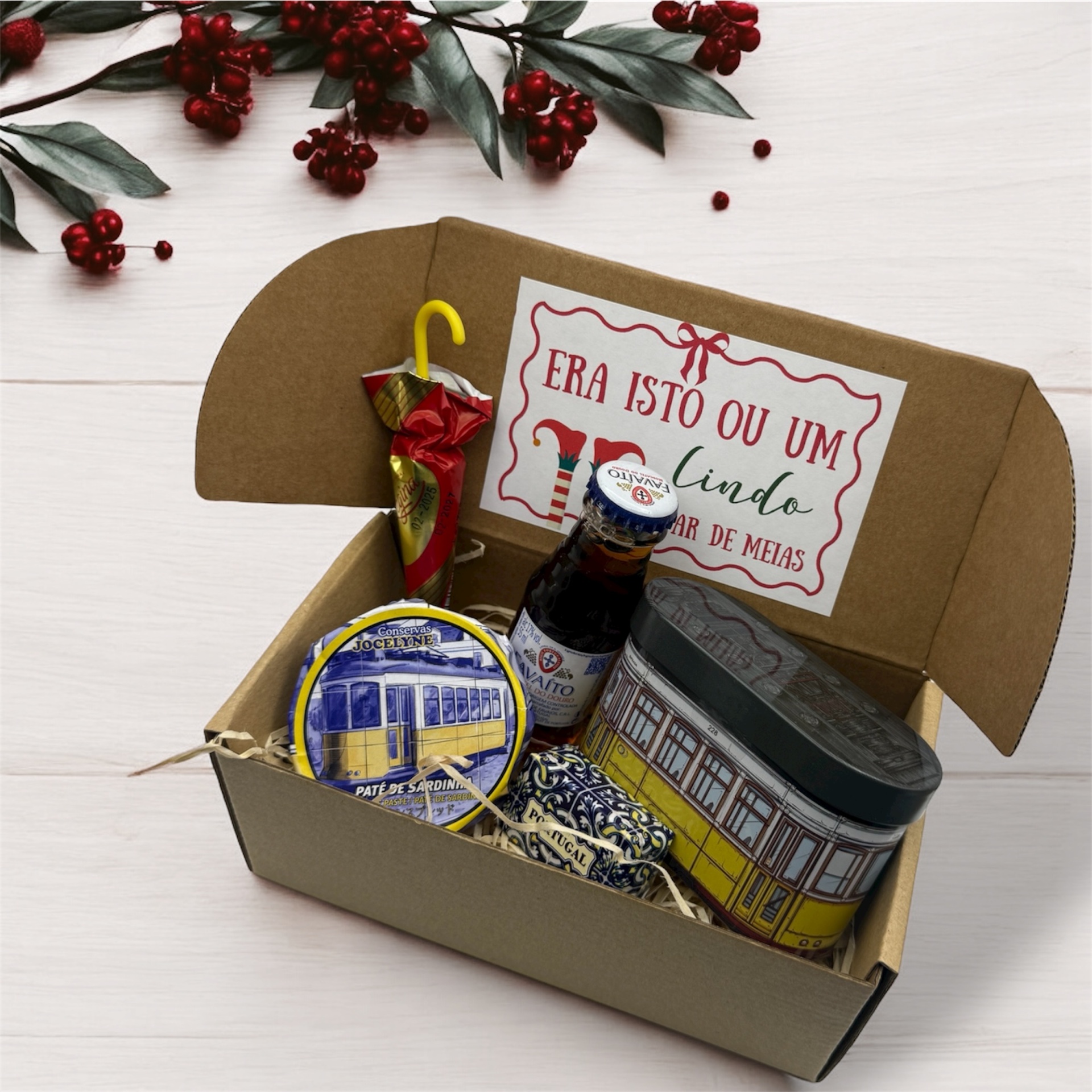 Cabaz Natal 14,90 € Desconto de %. IVA incluído. Partilhar Cabaz Cabaz 6 Cabaz 7 Cabaz 8 Cabaz 9 Cabaz10 Cabaz 11 Comprar Contactar SKU: 25NATAL06 Pack composto por caixa, etiqueta e produtos tradiconais portugueses Caso queira alguma personalização (ex Nome) podemos acrescentar sem qualquer custo!! Cabaz 6 - 14.90€ Licor Favaito Electrico drops Patê ( pode variar: Sardinha, sardinha picante, Atum, Cavala) Mini Sabonete Azeite Sombrinha chocolate Regina Cabaz 7 - 15.90€ Patê (pode variar: sardinha, sardinha picante, atum, cavala) Piri-Piri Miniatura doce (pode variar: Morangos ou Abobora ) Miniatura Sabonete Azeite Chocolates Bitsize ( pode variar: Pastel de Nata, Caramelo Salgado, Manteiga de amendoim, Gin, Touriga,Vinho do Porto, Moscatel, Café) Cabaz 8 -15.90€ Miniatura doce (pode variar: Morangos ou Abobora ) Miniatura Vinho do Porto 5cl Patê (pode variar: sardinha, sardinha picante, atum, cavala) Sardinha chocolate com sabor a Pastel de Nata Sal aromatizado Cabaz 9 -16.90€ Patê (Pode variar: Sardinha, Sardinha picante, Atum, Atum Picante) Gomas edição Natal Miniatura Favaito Miniatura de Chá ( pode variar: Pastel de Nata, melão, ananás, cereja, maçã) Cabaz 10 -16.90€ Miniatura de Chá ( pode variar: Pastel de Nata, melão, ananás, cereja, maçã) Piri Piri Sardinha de Chocolate embalagem com desenhos sortidos Mini Sabonete Azeite Cabaz 11 -16.90€ Pastel de Nata Magnetico (com caixa) Bombons Pastel de Nata Chá de Pastel de Nata Miniatura de Favaito
