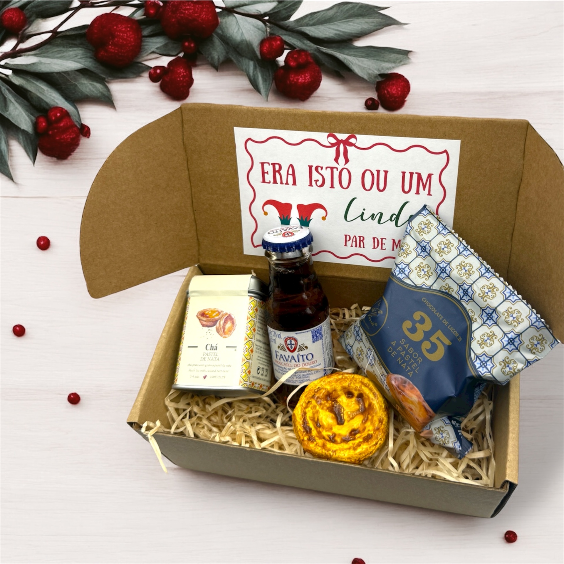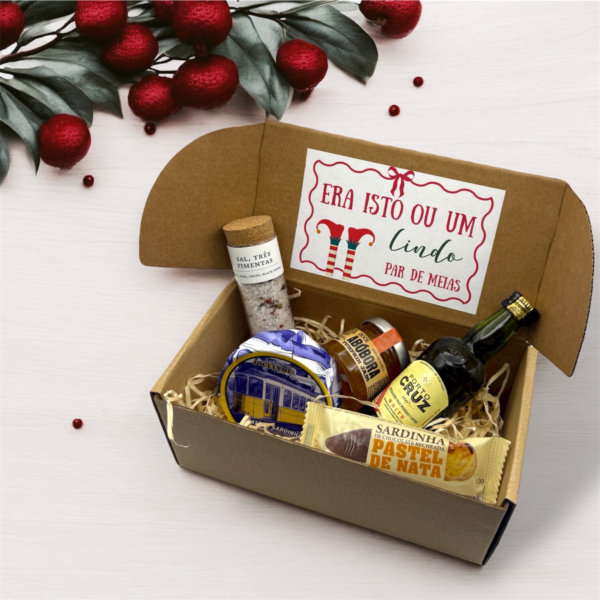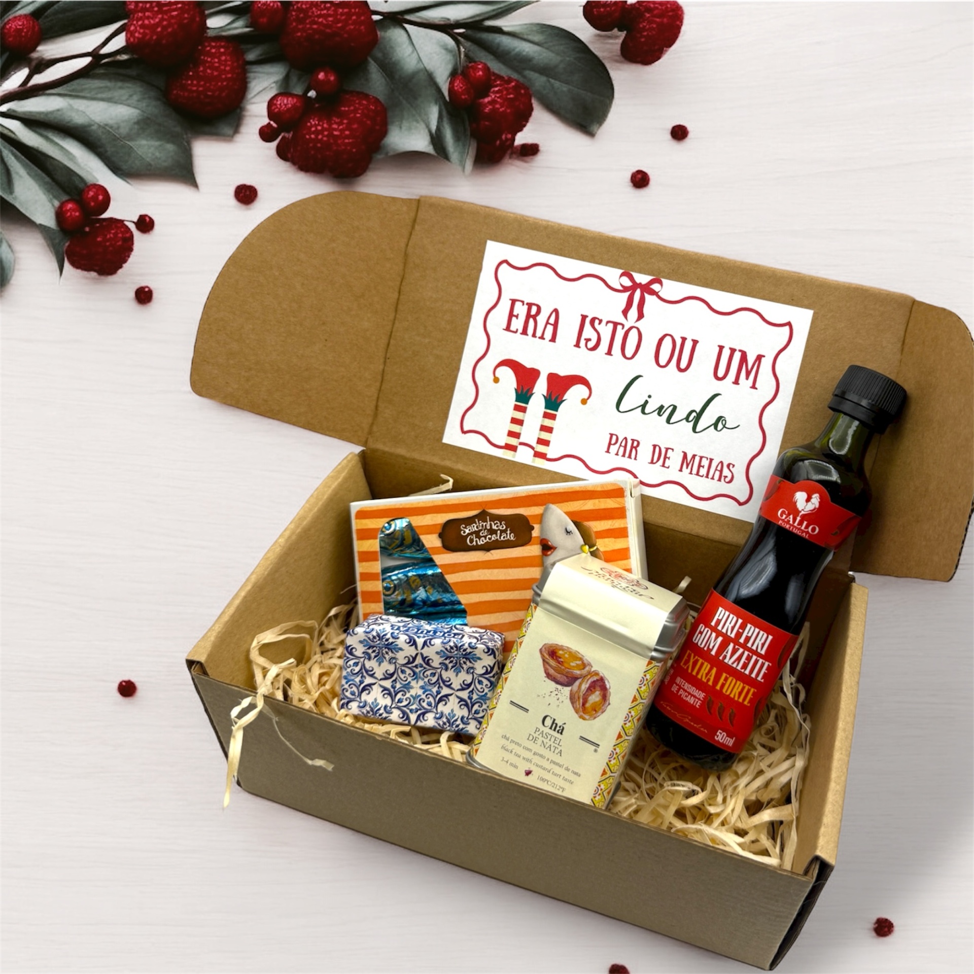 Cabaz Natal 14,90 € Desconto de %. IVA incluído. Partilhar Cabaz Cabaz 6 Cabaz 7 Cabaz 8 Cabaz 9 Cabaz10 Cabaz 11 Comprar Contactar SKU: 25NATAL06 Pack composto por caixa, etiqueta e produtos tradiconais portugueses Caso queira alguma personalização (ex Nome) podemos acrescentar sem qualquer custo!! Cabaz 6 - 14.90€ Licor Favaito Electrico drops Patê ( pode variar: Sardinha, sardinha picante, Atum, Cavala) Mini Sabonete Azeite Sombrinha chocolate Regina Cabaz 7 - 15.90€ Patê (pode variar: sardinha, sardinha picante, atum, cavala) Piri-Piri Miniatura doce (pode variar: Morangos ou Abobora ) Miniatura Sabonete Azeite Chocolates Bitsize ( pode variar: Pastel de Nata, Caramelo Salgado, Manteiga de amendoim, Gin, Touriga,Vinho do Porto, Moscatel, Café) Cabaz 8 -15.90€ Miniatura doce (pode variar: Morangos ou Abobora ) Miniatura Vinho do Porto 5cl Patê (pode variar: sardinha, sardinha picante, atum, cavala) Sardinha chocolate com sabor a Pastel de Nata Sal aromatizado Cabaz 9 -16.90€ Patê (Pode variar: Sardinha, Sardinha picante, Atum, Atum Picante) Gomas edição Natal Miniatura Favaito Miniatura de Chá ( pode variar: Pastel de Nata, melão, ananás, cereja, maçã) Cabaz 10 -16.90€ Miniatura de Chá ( pode variar: Pastel de Nata, melão, ananás, cereja, maçã) Piri Piri Sardinha de Chocolate embalagem com desenhos sortidos Mini Sabonete Azeite Cabaz 11 -16.90€ Pastel de Nata Magnetico (com caixa) Bombons Pastel de Nata Chá de Pastel de Nata Miniatura de Favaito
