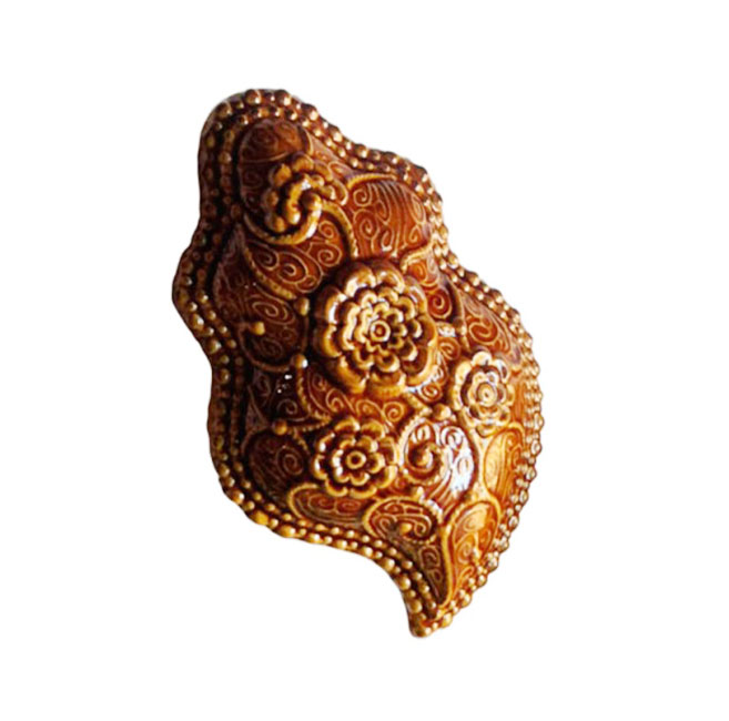• Peça decorativa castanha com relevo floral em cerâmica