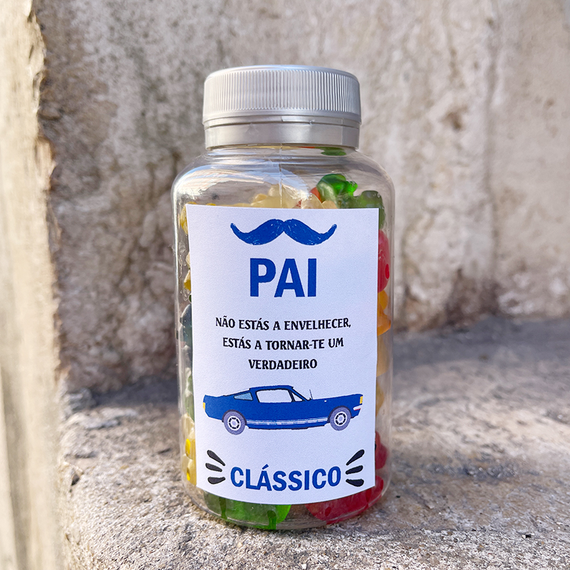 Gomas Dia do Pai 4,50 € Desconto de %. IVA incluído. Partilhar Mensagem Quem precisa de super herois Pai não estás a envelhecer Cá em casa quem manda Comprar Contactar SKU: PA22.0023 Descobrimos a cura para todos os teus males do teu PAI ! Gomas super divertidas! As Gomas são sortidas: OssosGarrafas de ColaUrsosFeijõesAmorasBeijinhosAcuçar sortidasTijolos Se não encontras a receita para a "doença" nós fazemos especialmente para ti! Envia um email.