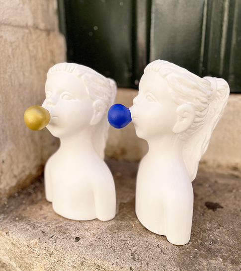 • Busto feminino branco em cerâmica com balão azul