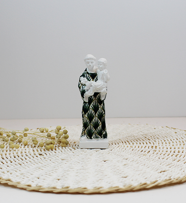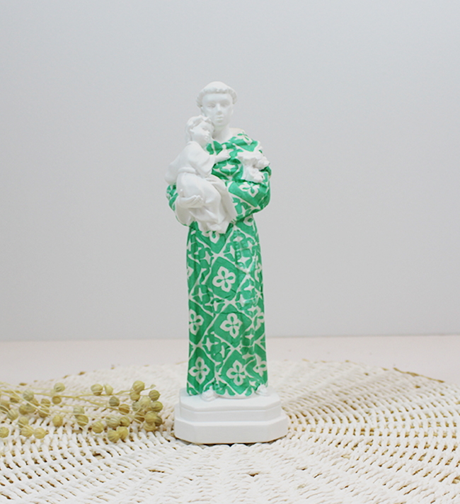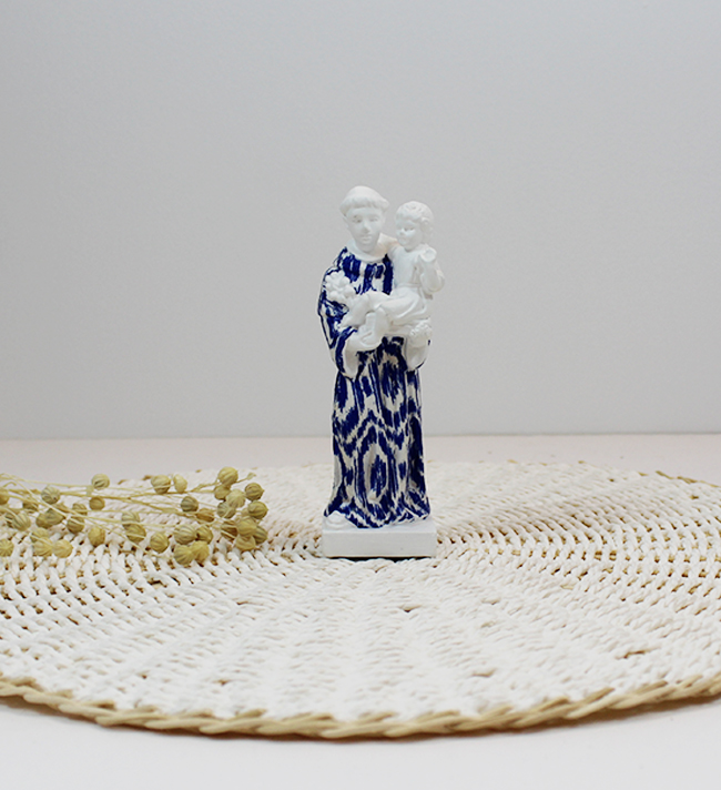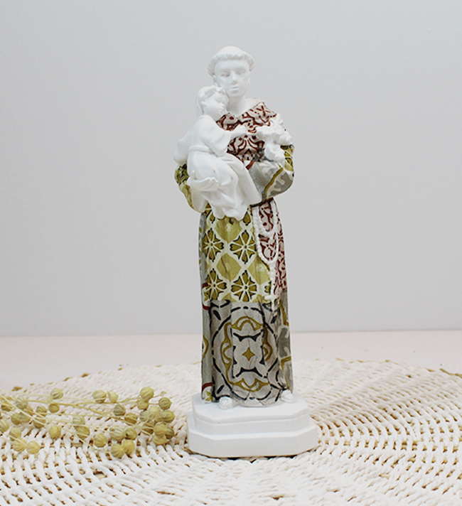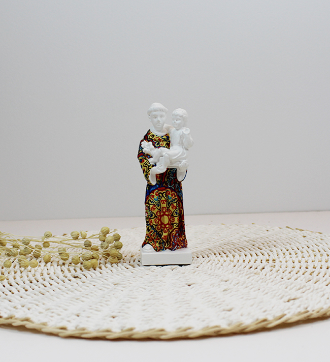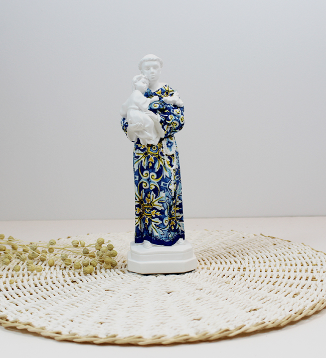 Santo António Personalizado 9,90 € Desconto de %. IVA incluído. Partilhar Tamanho Pequeno 10cm Médio 13cm Grande 21cm Padrão Padrão 1 Padrão 2 Padrão 3 Padrão 4 Padrão 5 Padrão 6 Padrão 7 Padrão 8 Padrão 9 Padrão 10 Padrão 11 Padrão 12 Padrão 13 Padrão 14 Padrão 15 Padrão 16 Padrão 17 Padrão 18 Padrão 19 Padrão 20 Padrão 21 Padrão 22 Padrão 23 Padrão 24 Padrão 25 Padrão 26 Padrão 27 Padrão 28 Padrão 29 Padrão 30 Padrão 31 Padrão 32 Comprar Contactar SKU: DCSA10P Tamanhos: Pequeno - 10cm Médio -13cm Grande-21cm Figura de Santo António pintado à mão. A peça constitui uma representação moderna do nosso Santo casamenteiro, um forte símbolo da cultura portuguesa. Se pretender alguma cor não apresentada fazemos personalizaçoes! Basta enviar um email com a cor pretendida IMPORTANTE - Todos os padrões apresentados são representativos podendo não ser exactamente iguais pois são peças únicas e feitas à mão.