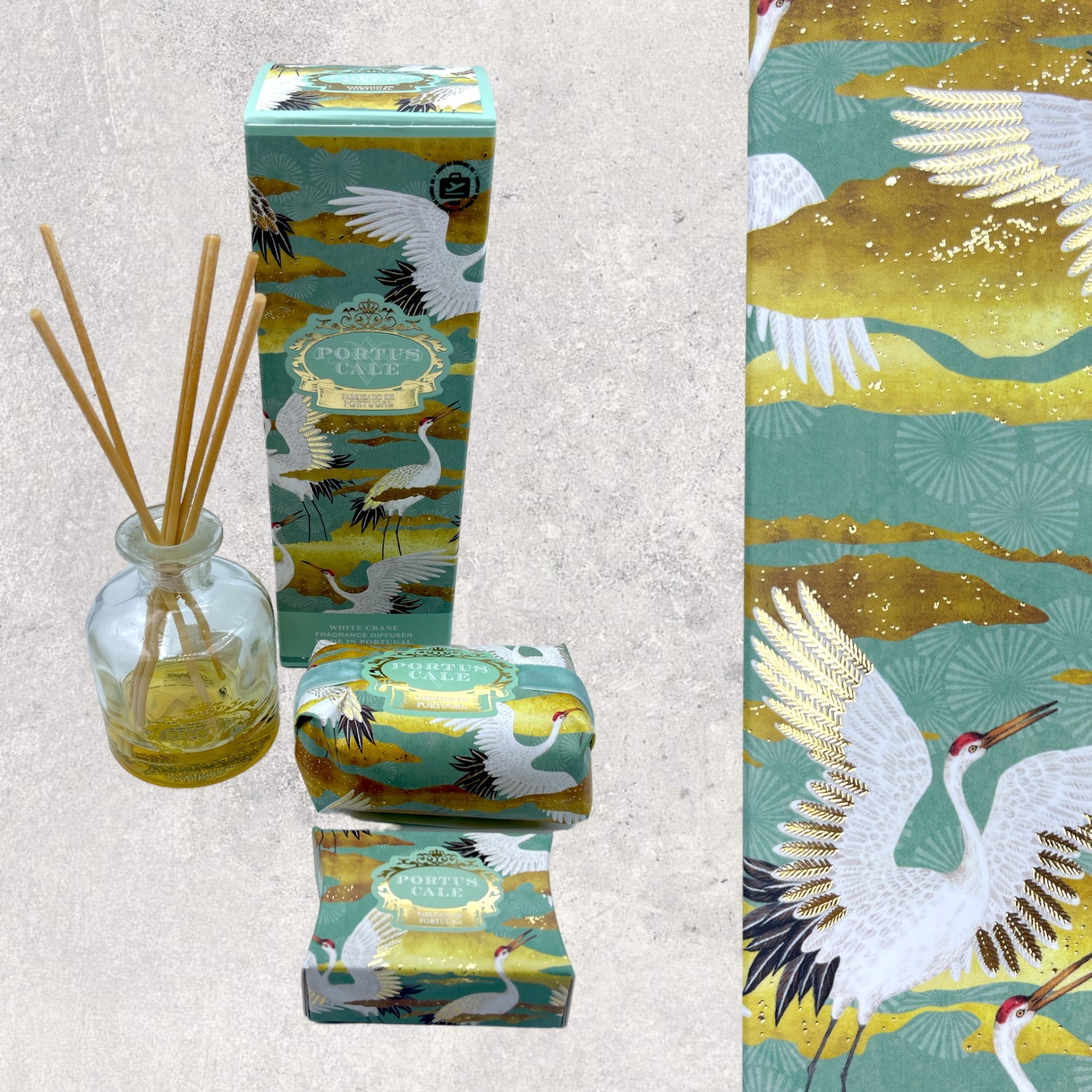 White Crane é uma coleção de inspiração asiática com um perfume airoso, uma fusão de Yuzu, Vetiver & Mandarina.